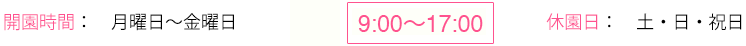 | 月曜~金曜 9:00~17:00 1時間単位 |